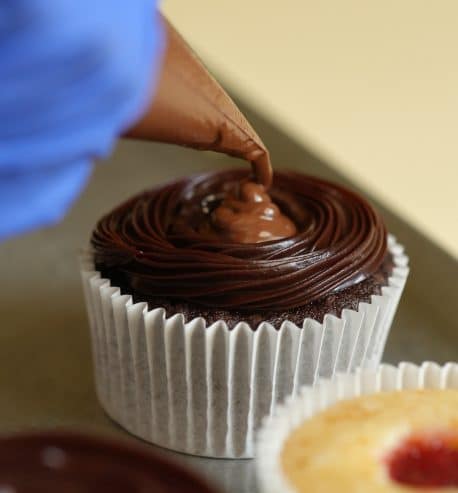 This cupcake is a dream come true for anyone who can’t resist the magic of Nutella. We start with a rich and moist chocolate cupcake base, baked to perfection. But wait, there’s more! We then take things up a level by filling the cupcake with a generous swirl of our homemade hazelnut praline. Imagine luscious caramelized hazelnuts, adding a delightful crunch and a burst of nutty flavor that will tantalize your taste buds with every bite. As if that wasn’t enough, the cupcake is then crowned with a decadent Nutella truffle frosting. It’s like spreading Nutella on a cloud – pure heaven! This frosting is the perfect marriage of creamy Nutella and smooth truffle, adding the perfect touch of hazelnut chocolaty goodness.